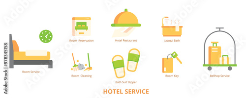 Hotel and Resort Icons for Room Service, Pool, Wi-Fi, and Accessibility