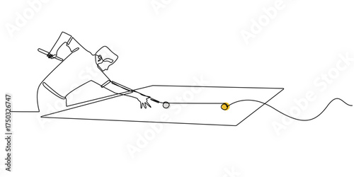 continuous one line drawing of a man playing billiards aiming a shot vector design