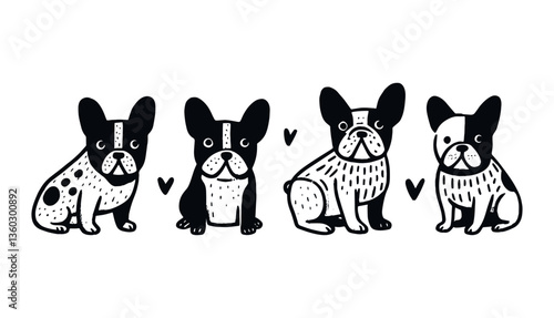Cute cartoon dog illustrations in various breeds and poses showcasing playful expressions and friendly features