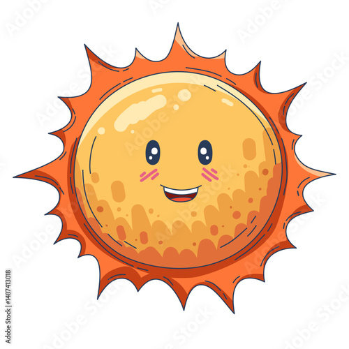 Cute cartoon sun with a happy face and rosy cheeks on a white background