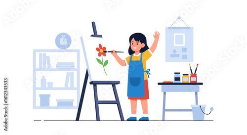 Creative Young Artist At Work Painting A Vibrant Floral Masterpiece