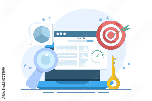 Flat illustration web analytics design , SEO optimization.