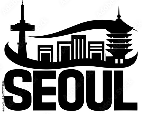 Seoul Skyline Outline Vector Illustration South Korea Cityscape Silhouette Line Art Asian City