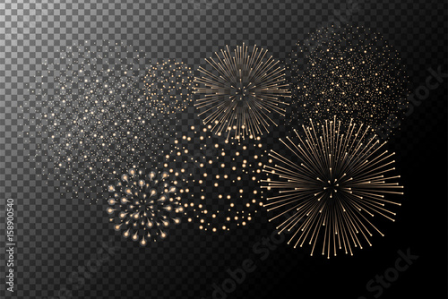 Fireworks isolated on white background, gold, vector, firework clipart no background, icon, illustration for congratulations graduates, Christmas, new year, holiday, birthday, party, celebration, USA