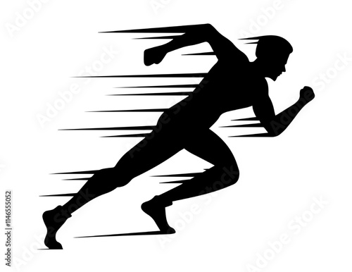 Running man silhouette with motion lines vector illustration of a fast athlete isolated on white background