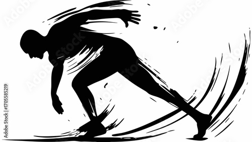Dynamic silhouette depicting intense motion and power of sprinter during fast dash