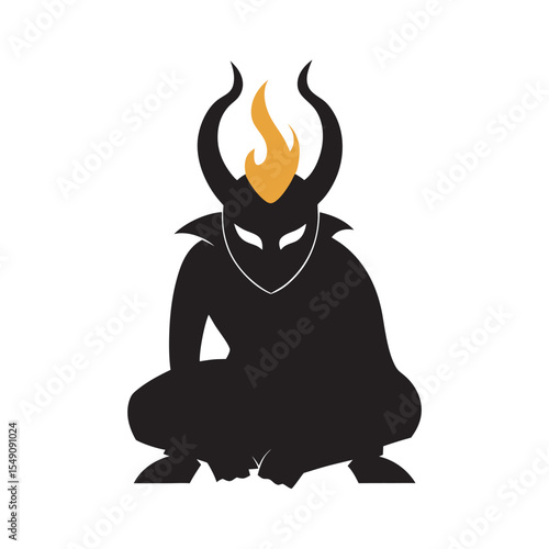 Silhouette of a Female Demon with Horns and Wings in a Vector Design