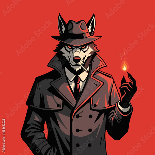 Mysterious wolf character holding flame in a stylish outfit