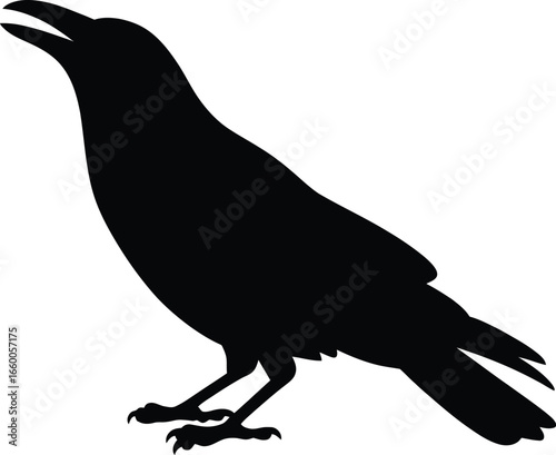Black bird silhouette open beak crow raven