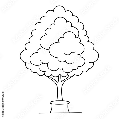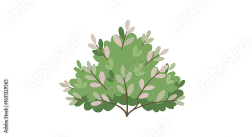 This vector illustration features a decorative green bush growing from a big flowerpot, perfect for gardening and plant enthusiasts