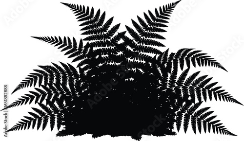 Fern plant silhouette, showcasing intricate leaf details, perfect for nature-themed designs, botanical illustrations, and decorative elements in various projects