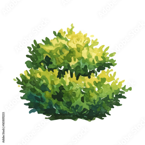 Set of watercolor lush green shrubs bushes gardening in various shapes design resources elements isolated on transparent background