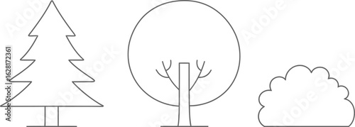 Diverse Vector Set of Green Trees, Bushes, and Potted Plants Collection Isolated on White