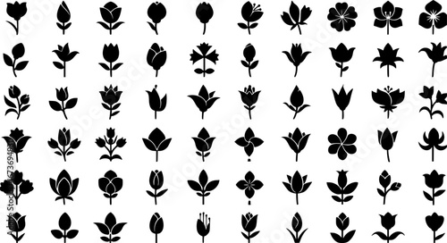 Black silhouettes of various plants and floral elements botanical nature vector, isolated on white background, cutout, png, clipping path, transparent, image, download, 2025,2026 download