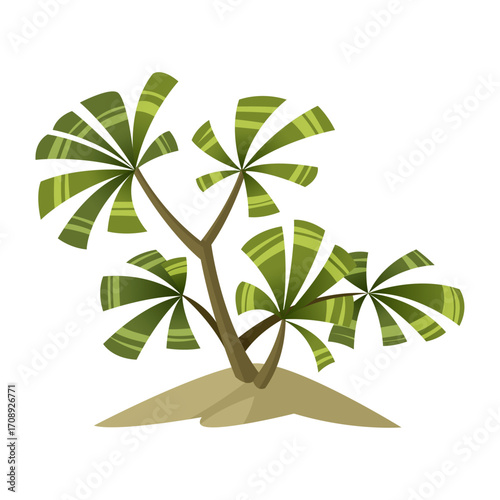 A vibrant and stylized cartoon illustration of an exotic palm bush