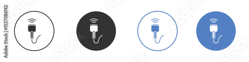 Linear transducer icon. Vascular ultrasound probe diagram. Medical sonography concept. Radiology equipment vector illustration.