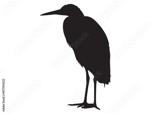 Silhouette of a graceful heron standing with its long neck curved and pointed beak