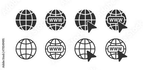 Earth web icon. Browser click symbol. WWW sign. Global network. Website connection.