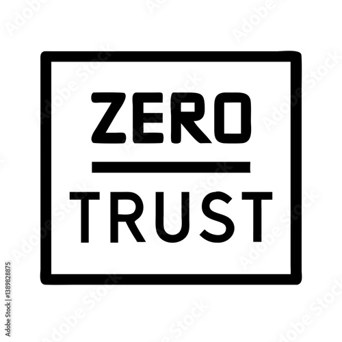 Line style icons of zero trust security: identity verification, no implicit trust, continuous authentication, access control, microsegmentation, policy check, encrypted traffic, risk-based access.