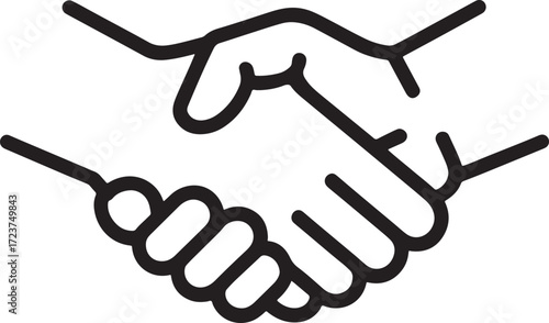 Handshake icon in black outline style, symbolizing trust and relationship building, ideal for community platforms, networking tools and social interaction designs