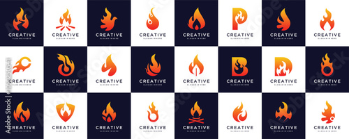 Set of  Creative Fire Flames  Business logo icon flat design template
