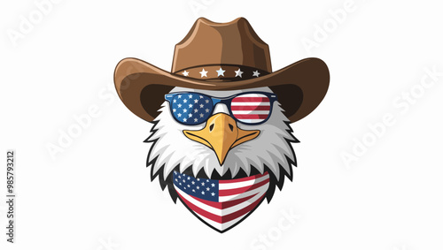 Stylized eagle with a cowboy hat and sunglasses, showcasing patriotism with American flag elements. Ideal for various creative uses.