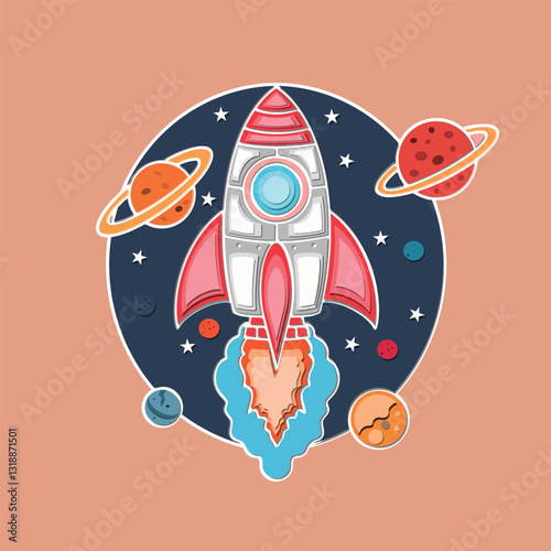 Rocket ship astronaut space travel exploration adventure cosmic journey vector illustration design element