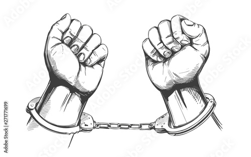Shackled Hands in handcuffs. .Man in jail prisoner. Vector illustration