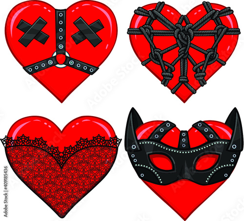 Pretty BDSM Mistress as Beautiful Brunette Woman in Latex Dress with Whip Vector Set