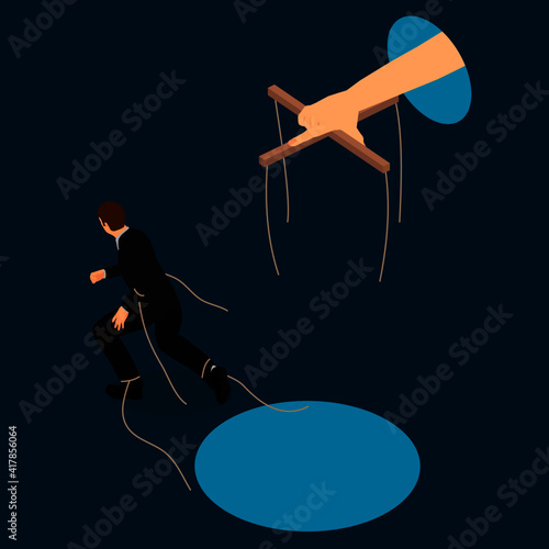 Puppet Master controlling Silhouette of businessman. Concept of manipulation and micromanagement