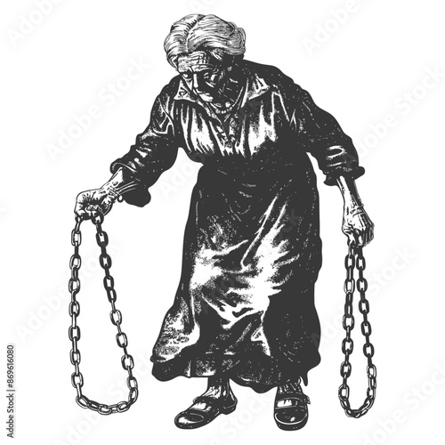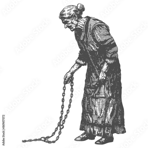 Severity of Mortgage with Woman Pulling Iron Ball on Chain as Heavy Burden of Credit Vector Illustration