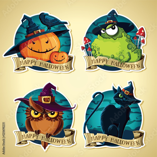 Halloween holiday cute element set. Childish print for stickers, greeting card and decoration