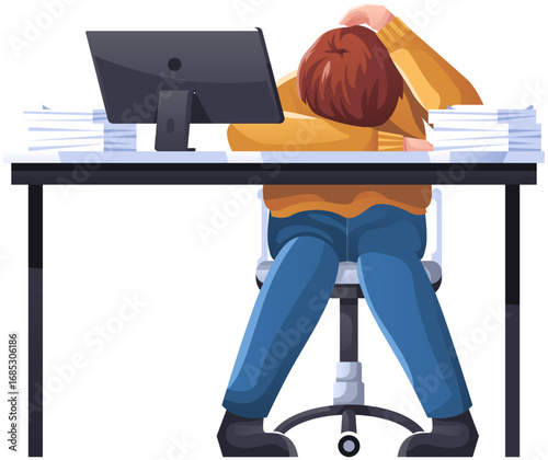 Isometric man sleeping in bed at night. Tiredness and exhaustion concept.