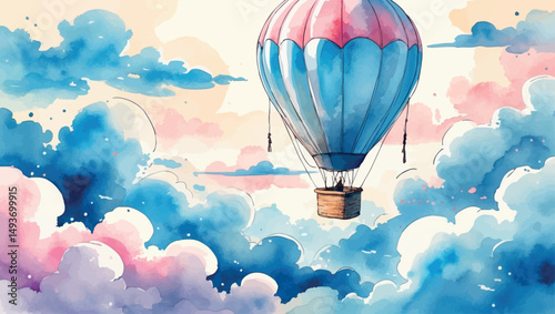 A vibrant cartoon illustration depicts a red rocket ship launching into the sky, surrounded by fluffy clouds.