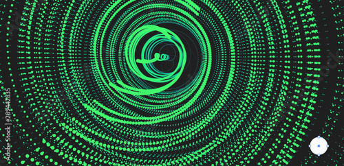 Array with dynamic particles. Swirl with connected dots. Abstract science or technology background. 3d vector illustration.