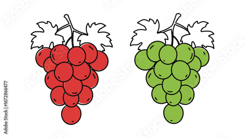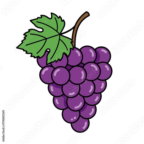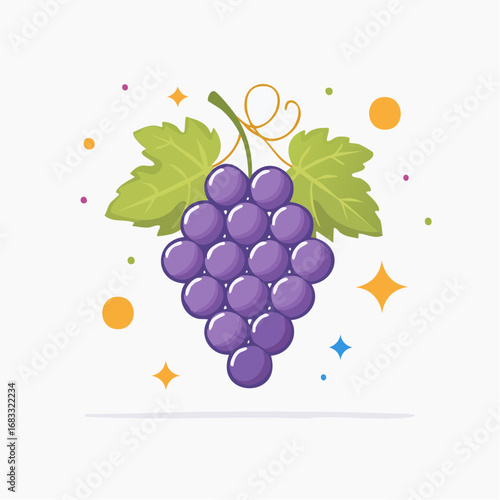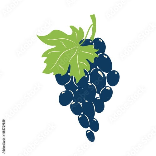 Elegant stylized grape cluster vector illustration with simple backdrop leaves