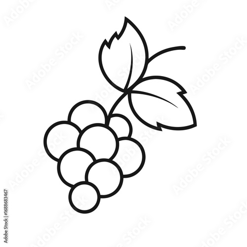 Stylized grape cluster with leaves in high contrast black and white design