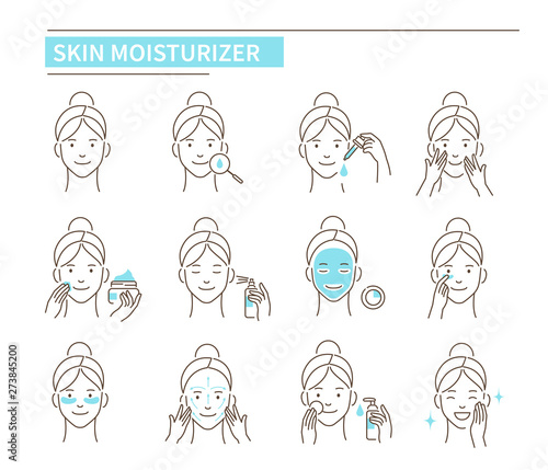 Moisture line icon set, moisturizing cream skincare sign for cosmetics packaging. vector illustration on white background