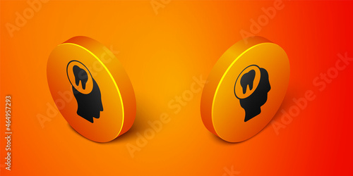 Isometric Toothache icon isolated on orange background. Orange circle button. Vector