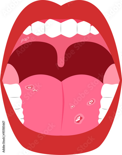 Mouth disease Illustration. Mouth ulcer. Oral cancer.