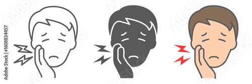 Illustration of a man with a toothache, symbolizing dental pain, an oral health problem, or a visit to the dentist.