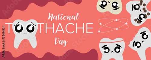 Banner for National Toothache Day with sad teeth with decay
