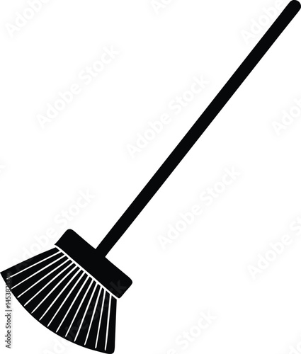 Minimalistic black silhouette of broom and dustpan