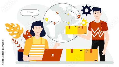 E-commerce owner managing cross-border shipping, flat vector illustration