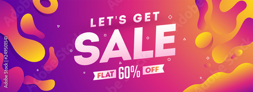 Advertising banner design with 60% discount offer on fluid art abstract background.