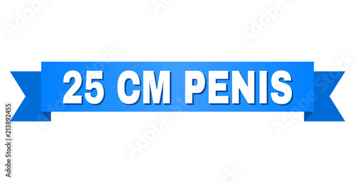 25 CM PENIS text on a ribbon. Designed with white title and blue tape. Vector banner with 25 CM PENIS tag.