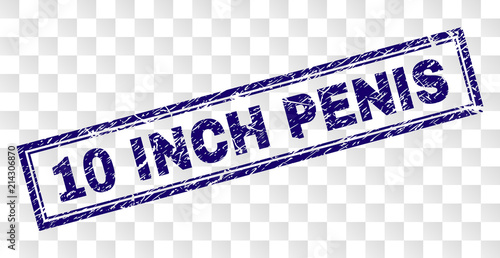 10 INCH PENIS stamp seal print with grunge style. Seal shape is a rounded rectangle with frame. Blue vector rubber print of 10 INCH PENIS caption with scratched style.