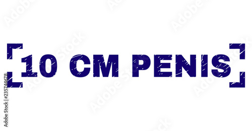 10 CM PENIS text seal imprint with grunge texture. Text tag is placed between corners. Blue vector rubber print of 10 CM PENIS with scratched texture.