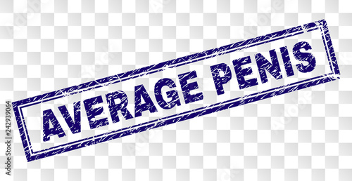 AVERAGE PENIS stamp seal imprint with rubber print style and double framed rectangle shape. Stamp is placed on a transparent background.