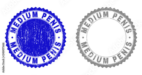Grunge MEDIUM PENIS stamp seals isolated on a white background. Rosette seals with grunge texture in blue and grey colors. Vector rubber stamp imprint of MEDIUM PENIS caption inside round rosette.